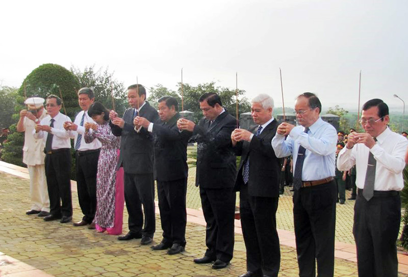 Đoàn đại biểu lãnh đạo tỉnh đặt vòng hoa và dâng hương viếng hương hồn các liệt sĩ