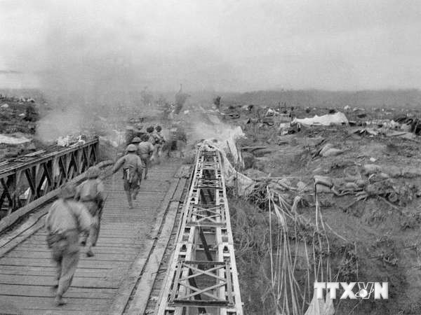 Bộ đội ta vượt qua cầu Mường Thanh, tấn công vào khu trung tâm Điện Biên Phủ