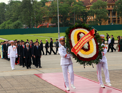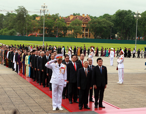 Lãnh đạo Đảng, Nhà nước, Chính phủ, Quốc hội và các đại biểu vào lăng viếng Chủ tịch Hồ Chí Minh trước giờ khai mạc