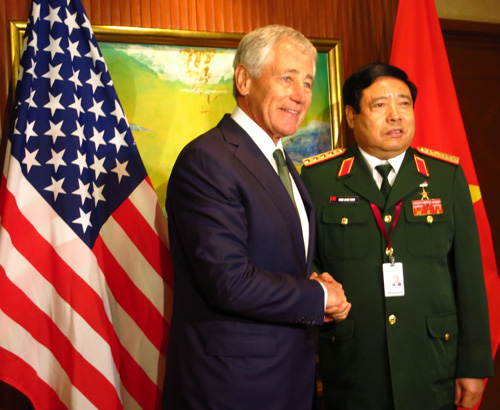 Bộ trưởng Quốc phòng Phùng Quang Thanh (phải) và Bộ trưởng Bộ Quốc phòng Mỹ Chuck Hagel