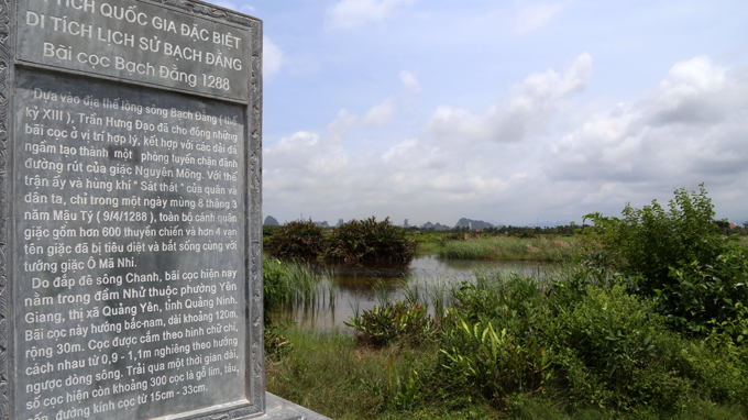 Bia lưu danh công đức của triều Trần bên bờ sông Bạch Đằng |