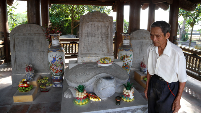 Cụ thủ hương Lê Hữu Lâm, 84 tuổi, trao cho tôi nén hương đỏ lửa rồi trầm tư kể rằng dưới từng tấc đất này đều đẫm dày trầm tích chiến trận.