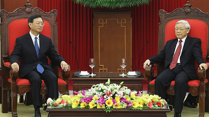 Tổng bí thư Nguyễn Phú Trọng hoan nghênh ông Dương Khiết Trì sang Việt Nam tiến hành cuộc gặp giữa hai chủ tịch Ủy ban chỉ đạo hợp tác song phương Việt Nam - Trung Quốc; khẳng định chính sách nhất quán của Đảng, Nhà nước và nhân dân Việt Nam luôn coi trọng quan hệ hữu nghị, hợp tác với Trung Quốc; mong muốn giữ gìn, củng cố và không ngừng làm cho quan hệ Việt - Trung phát triển lành mạnh, ổn định vì lợi ích cơ bản và lâu dài của nhân dân hai nước; đánh giá cao về những bước phát triển tích cực trong quan hệ Việt - Trung những năm gần đây.