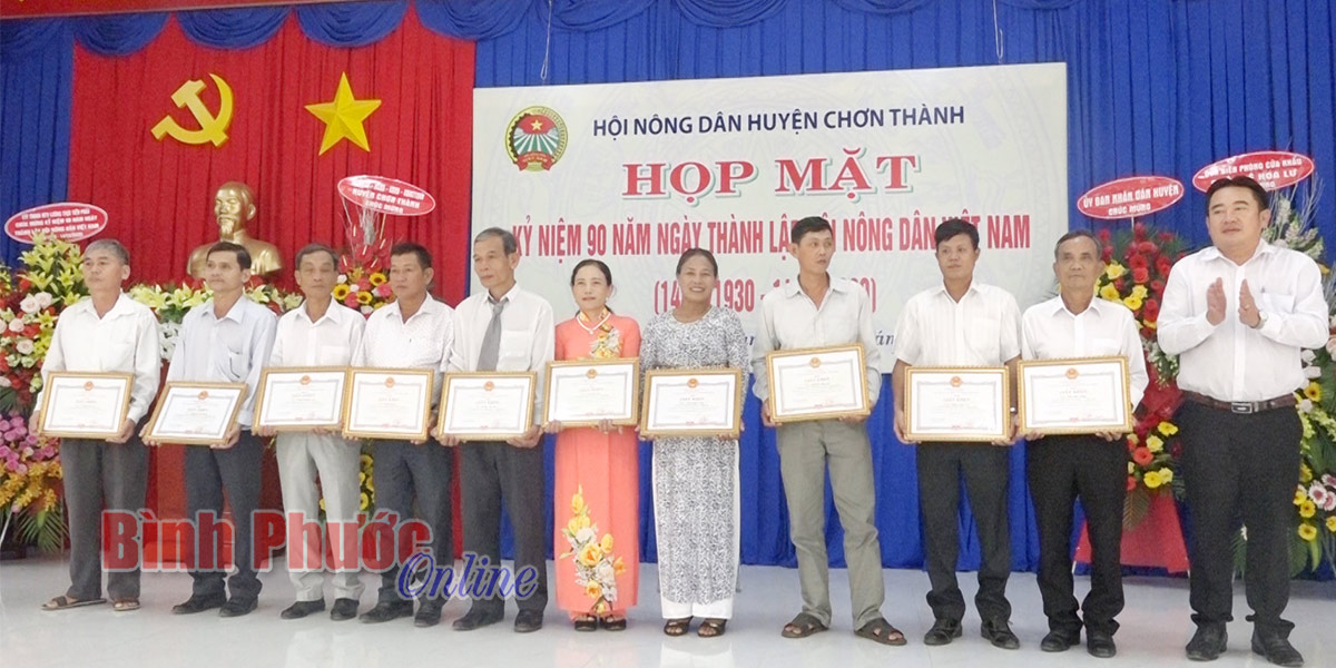 Tại buổi họp mặt, các đại biểu cùng ôn lại truyền thống 90 năm ra đời và trưởng thành của Hội Nông dân Việt Nam. Quá trình hình thành, phát triển của Hội Nông dân huyện Chơn Thành. Hiện nay toàn huyện có 6.512 hội viên, với 9 cơ sở hội xã, thị trấn; 525 hội viên là đảng viên/6.512 hội viên, đạt 8,06 %.
