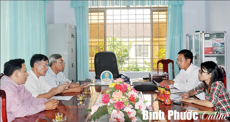 Lãnh đạo và phóng viên Báo Bình Phước làm việc với Thường trực Đảng ủy, UBND xã Phú Văn (Bù Gia Mập) ngày 12-8-2014 - Ảnh: T.Mảng