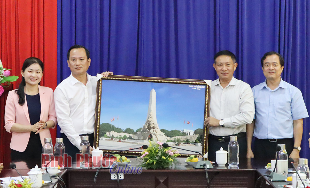 Lãnh đạo thành phố Đồng Xoài và đoàn công tác trao đổi chia sẻ kinh nghiệm với lãnh đạo Thành ủy, UBND thành phố Tây Ninh
