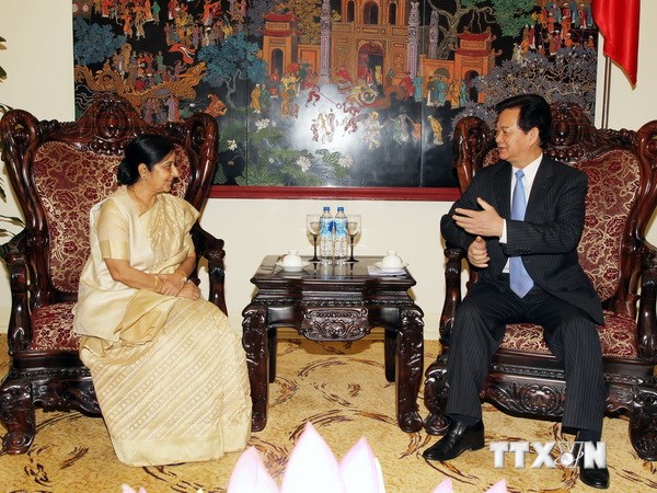 Thủ tướng Nguyễn Tấn Dũng tiếp Bộ trưởng Bộ Ngoại giao Ấn Độ Sushma Swaraj đang thăm chính thức Việt NamĐánh giá cao kết quả hội đàm giữa hai Bộ trưởng Ngoại giao hai nước, Thủ tướng Nguyễn Tấn Dũng cho rằng kết quả chuyến thăm này sẽ là đóng góp rất quan trọng trong việc thúc đẩy quan hệ hữu nghị truyền thống, đối tác chiến lược giữa Việt Nam và Ấn Độ.
