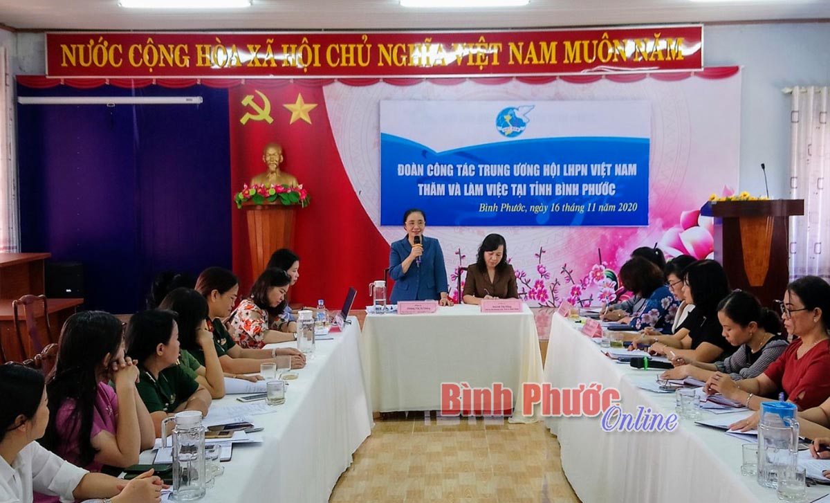Đoàn đã đánh giá cao công tác cán bộ nữ, các hoạt động thu hút phụ nữ của các cấp hội phụ nữ ở Bình Phước. Nhất là phụ nữ cao tuổi, đồng bào dân tộc thiểu số tham gia tổ chức hội. Đồng thời dành thời gian đánh giá về kết quả của hội tham gia vào hoạt động giảm nghèo bền vững, phát triển kinh tế - xã hội, phòng chống Covid-19, hỗ trợ đồng bào bị lũ lụt ở miền Trung…