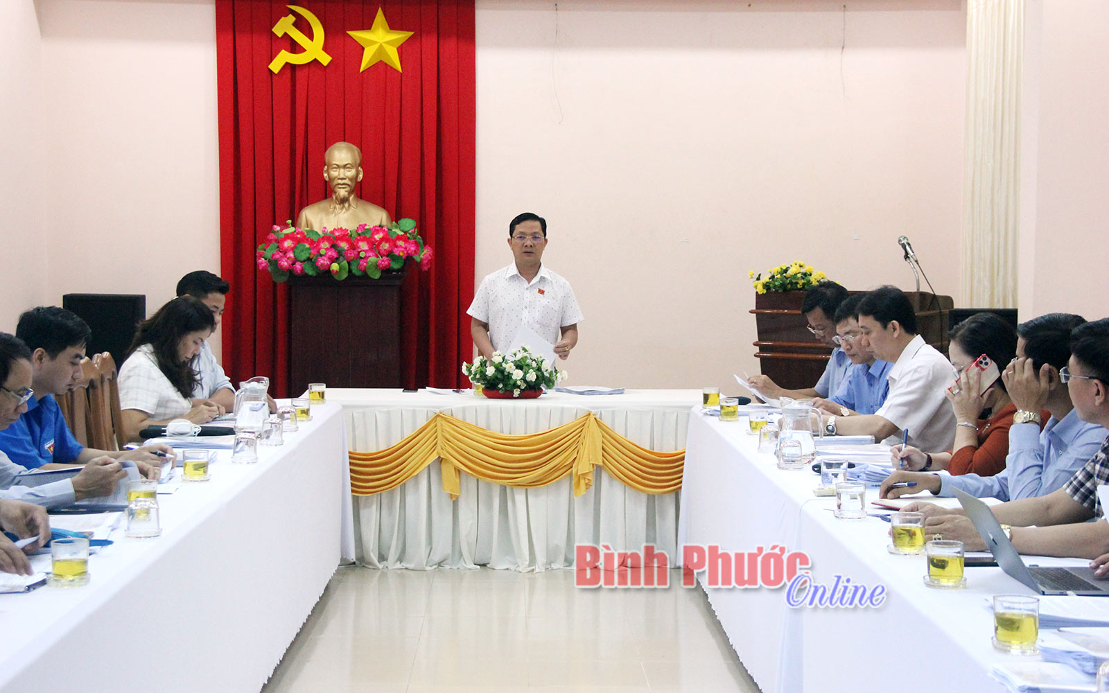 Trưởng ban Tuyên giáo Tỉnh ủy, Trưởng ban Văn hóa - xã hội HĐND tỉnh Hà Anh Dũng phát biểu tại buổi làm việc