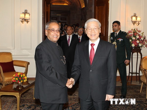 Tổng Bí thư Nguyễn Phú Trọng bắt tay Tổng thống Ấn Độ Pranab Mukherjee trong chuyến thăm Ấn Độ năm 2013- Thưa Ngài, quan hệ nồng ấm giữa Việt Nam và Ấn Độ do Chủ tịch Hồ Chí Minh và Thủ tướng Jawaharlal Nehru tạo dựng đã được các thế hệ lãnh đạo kế tiếp và nhân dân hai nước vun đắp. Ngài đánh giá thế nào về quan hệ giữa hai nước hiện nay?