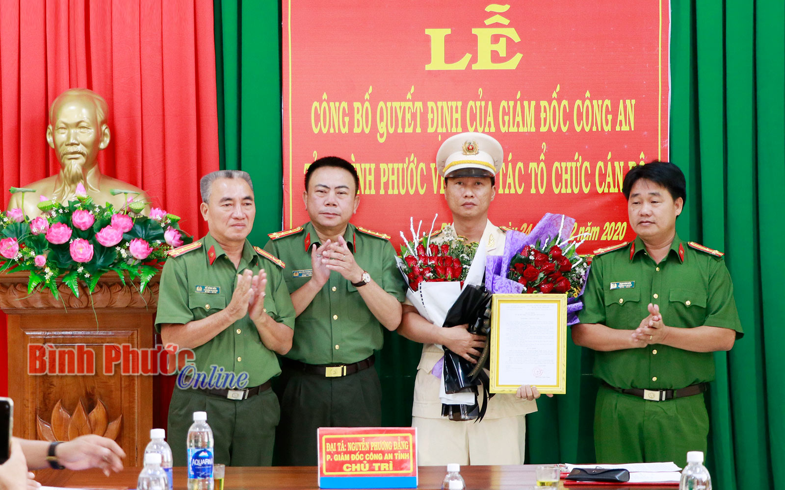 Tại buổi lễ, Đại tá Dương Văn Mạnh, Phó giám đốc Công an tỉnh đã trao quyết định điều động Thượng tá Lê Đức Cường, sinh năm 1976, quê quán tỉnh Hà Tĩnh, Phó trưởng Công an huyện Chơn Thành đến công tác và giữ chức vụ Phó trưởng Công an thành phố Đồng Xoài. Quyết định có hiệu lực ngày 25-12.