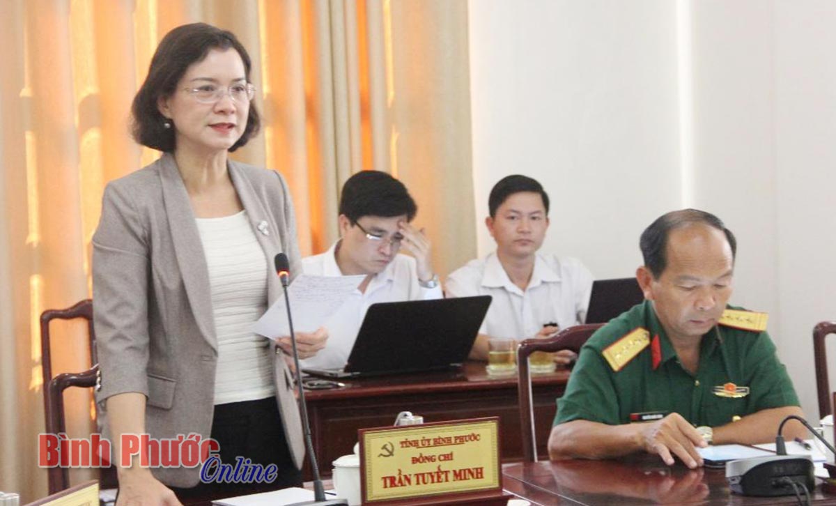 Phó chủ tịch UBND tỉnh Trần Tuyết Minh phát biểu tại buổi làm việc