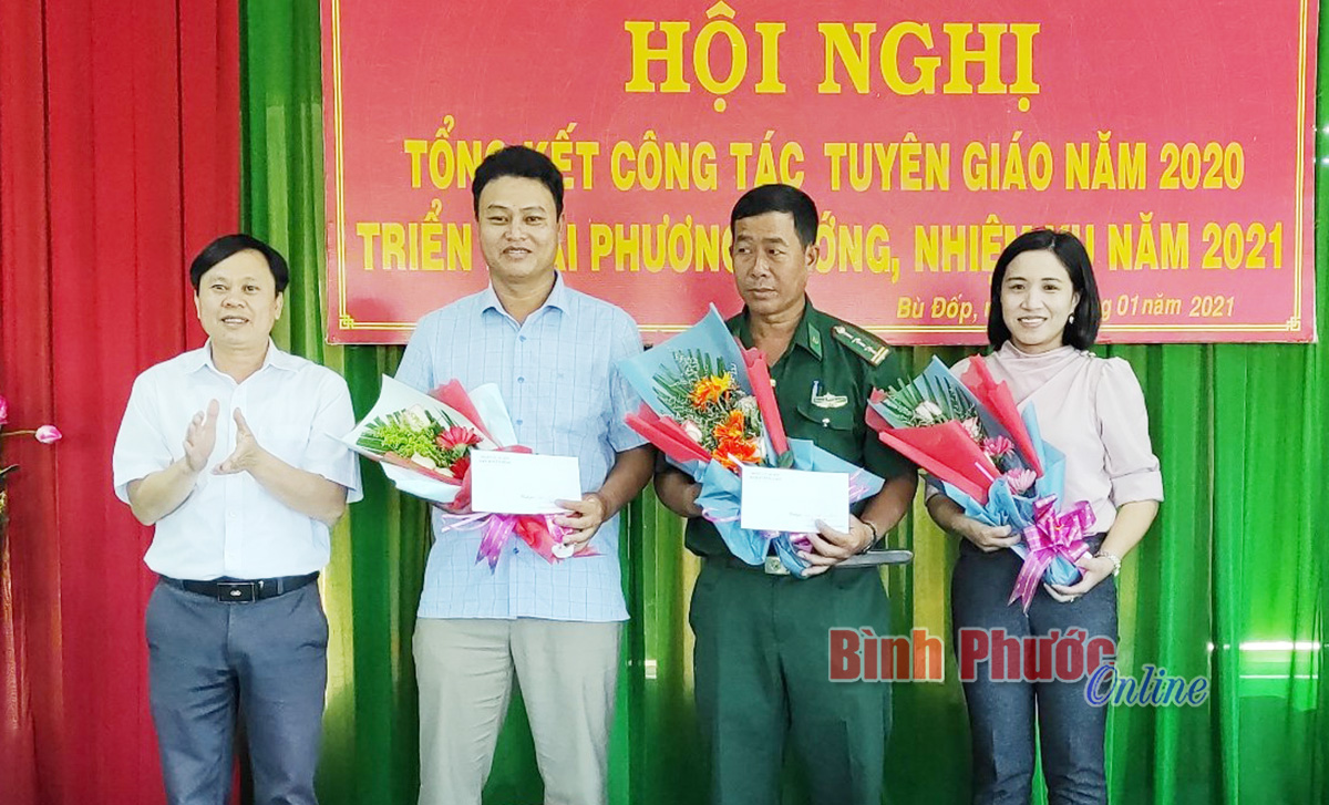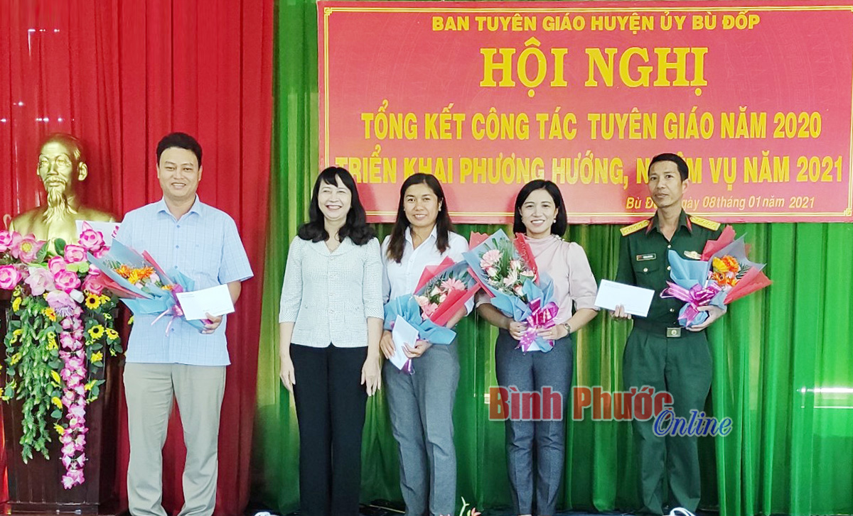 Dịp này Ban Tuyên giáo Huyện ủy đã khen thưởng cho 4 tập thể, 5 cá nhân có thành tích trong công tác tuyên giáo năm 2020 và tích cực tham gia trang facebook “Bù Đốp Ngày mới”.