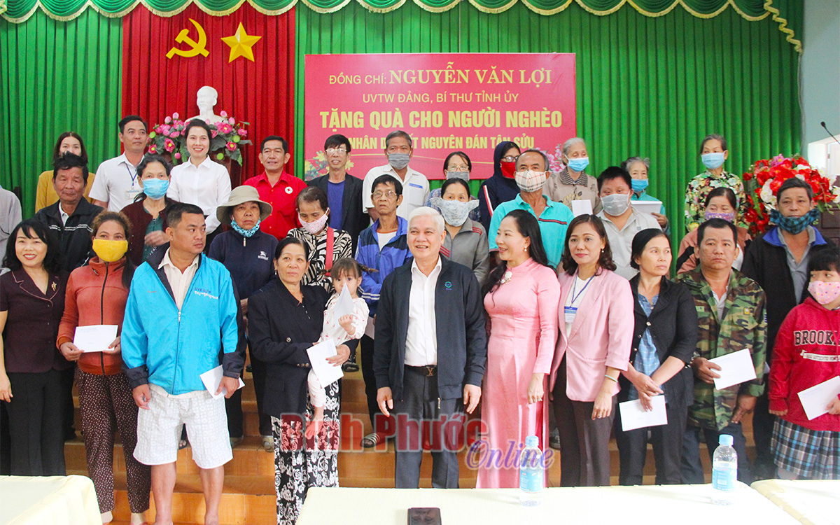 Dịp này, Bí thư Tỉnh ủy Nguyễn Văn Lợi đã tặng 110 phần quà, mỗi phần trị giá 500 ngàn đồng cho các đối tượng trên địa bàn thị xã Bình Long và huyện Hớn Quản.