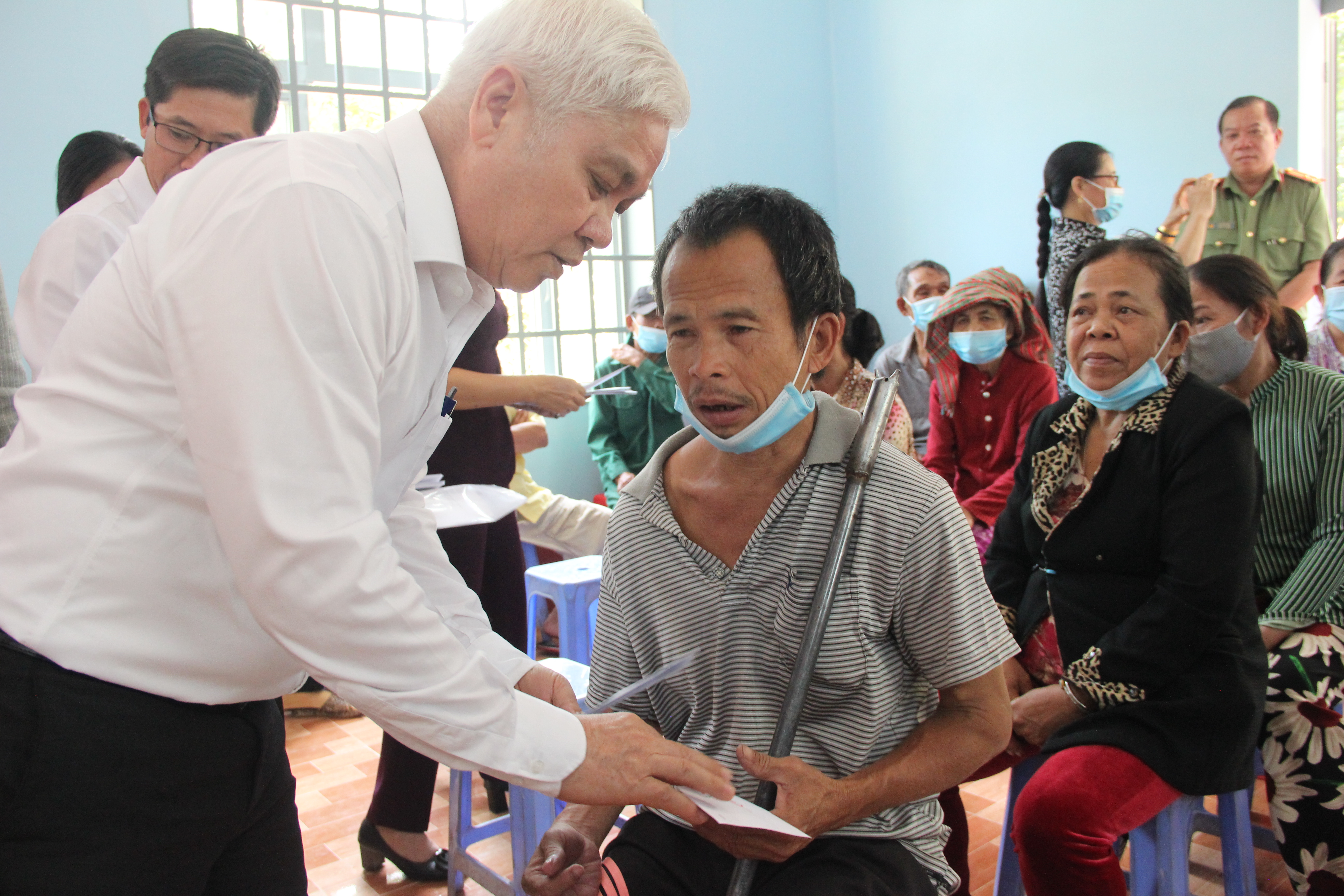 Ủy viên Trung ương Đảng, Bí thư Tỉnh ủy Nguyễn Văn Lợi tặng quà người khuyết tật xã Phước An, huyện Hớn Quản