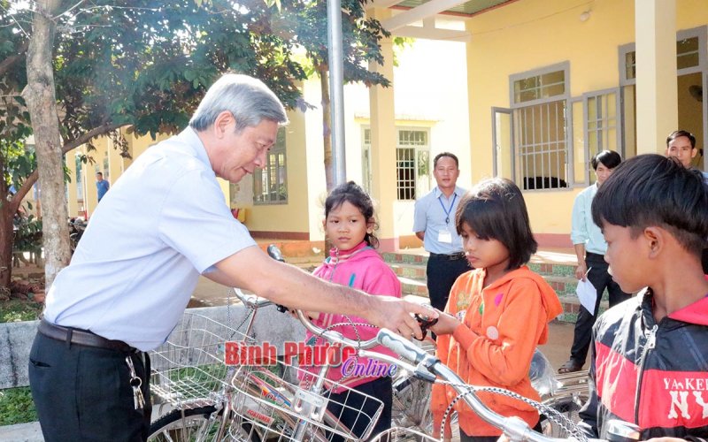 Ủy viên Trung ương Đảng, Bí thư Tỉnh ủy Nguyễn Văn Lợi tặng quà tết cho học sinh nghèo học giỏi ở xã Tân Tiến, huyện Đồng Phú