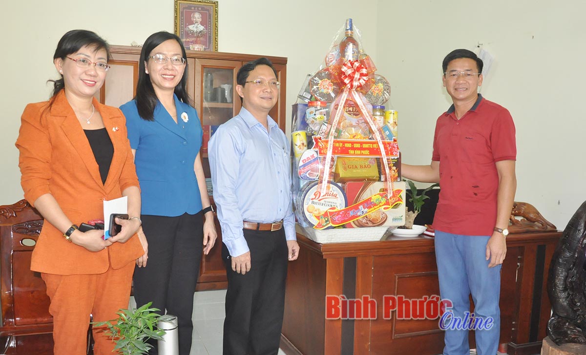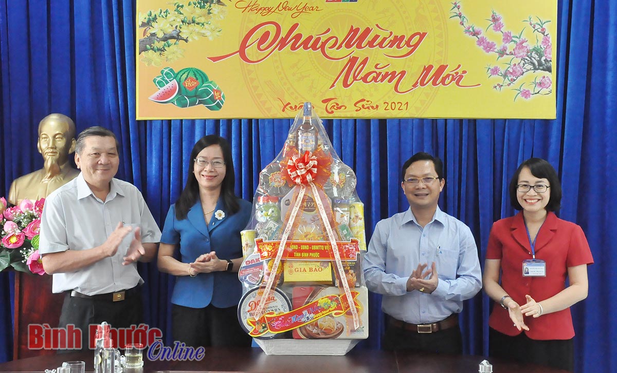 Đoàn chúc tết và chụp hình lưu niệm với tập thể cơ quan thường trú thường trú Thông tấn xã Việt Nam tại Bình Phước