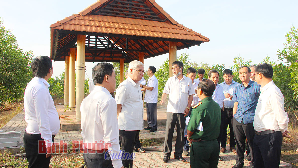Bí thư Tỉnh ủy Nguyễn Văn Lợi cùng đại diện lãnh đạo các sở, ngành và huyện Lộc Ninh thăm điểm dừng chân của Thủ tướng Hun Sen khi đi tìm đường cứu nước tại Việt Nam