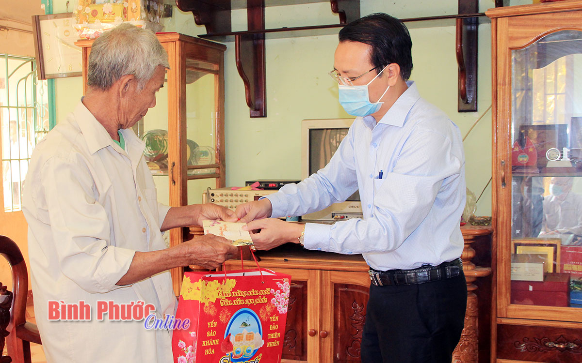 Cùng ngày, các thành viên trong đoàn đã đến thăm, chúc tết, tặng quà cho Anh hùng lực lượng vũ trang Dương Đức Thùng, gia đình đảng viên Hoàng Thị Nhị, huy hiệu 65 năm tuổi Đảng và gia đình chính sách Nguyễn Văn Lại ở thành phố Đồng Xoài.
