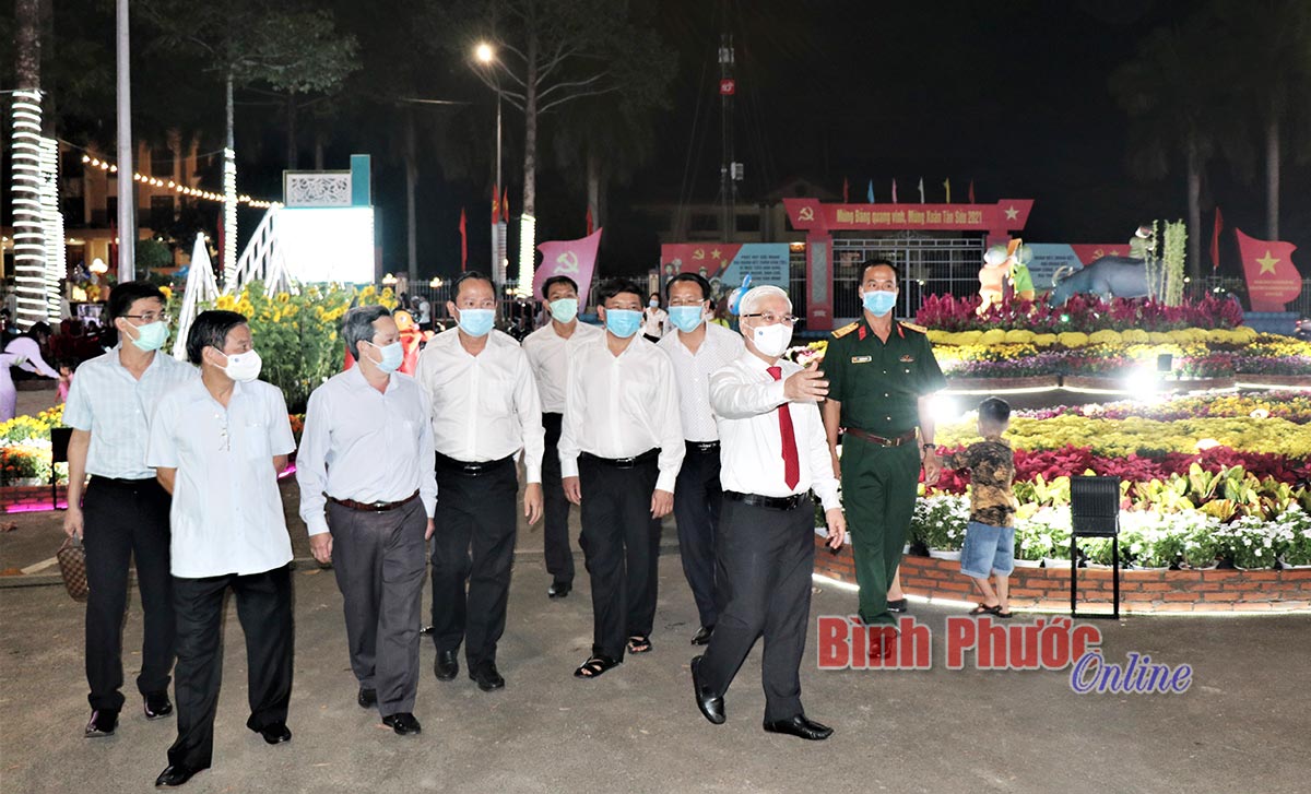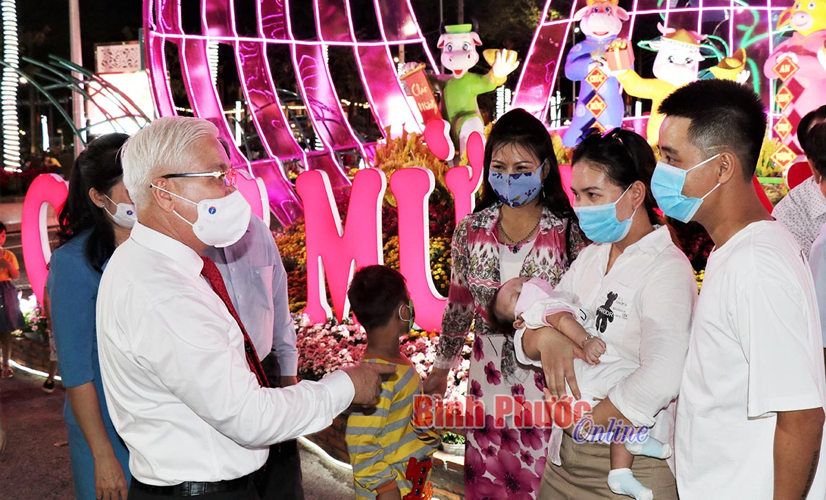 Bí thư Tỉnh ủy Nguyễn Văn Lợi thăm đường hoa xuân Tân Sửu và trò chuyện với nhân dân thành phố Đồng Xoài