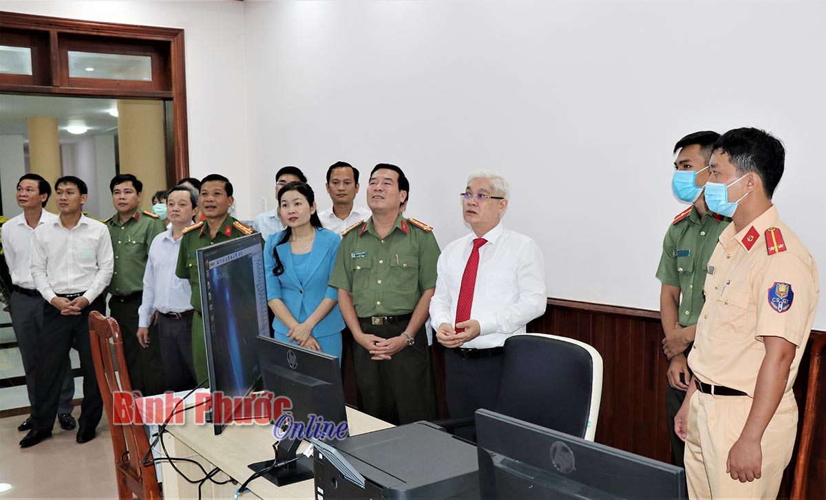 Bí thư Tỉnh ủy Nguyễn Văn Lợi thăm Trung tâm Giám sát an ninh, giao thông của Công an tỉnh