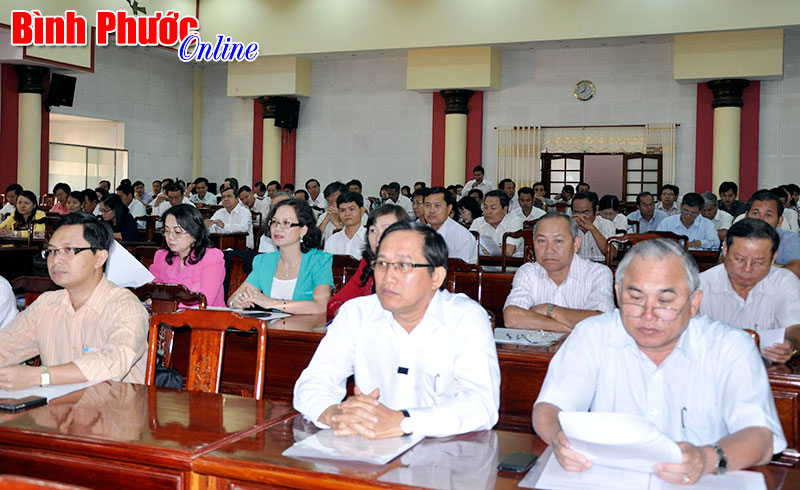 Cán bộ chủ chốt của tỉnh nghe thông tin thời sự - Ảnh: T.B