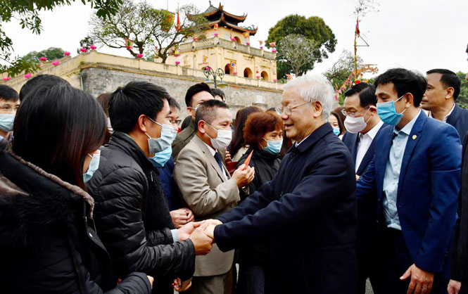 Nhân dịp này, Tổng Bí thư, Chủ tịch nước Nguyễn Phú Trọng đã chúc Tết, tặng quà cán bộ, công nhân viên Ban Quản lý di tích Hoàng thành Thăng Long. Tổng Bí thư, Chủ tịch nước Nguyễn Phú Trọng mong muốn, mỗi cán bộ, công nhân viên đơn vị phát huy tinh thần trách nhiệm cao nhất góp sức mình gìn giữ những giá trị tốt đẹp của dân tộc Việt Nam và của Thăng Long - Hà Nội, bảo tồn và phát huy những giá trị lịch sử văn hóa của khu di sản đã được Tổ chức Giáo dục, Khoa học và Văn hóa của Liên hợp quốc (UNESCO) ghi danh là Di sản văn hóa thế giới.