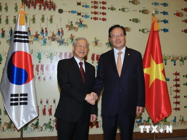 Riêng Chủ tịch Quốc hội Chung Ui Hwa đã hoãn chuyến công du nước ngoài để đón tiếp Tổng Bí thư Nguyễn Phú Trọng và Đoàn đại biểu Việt Nam tại Seoul.