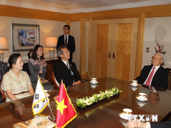 Trong chuyến thăm, các nhà lãnh đạo cao nhất của Hàn Quốc: Tổng thống Park Geun-hye, Thủ tướng Chính phủ Jeong Hong Won, Chủ tịch Quốc hội Chung Ui Hwa, Chủ tịch Đảng Saenuri cầm quyền Kim Moo Sung đều đã hội đàm, hội kiến với Tổng Bí thư Nguyễn Phú Trọng.