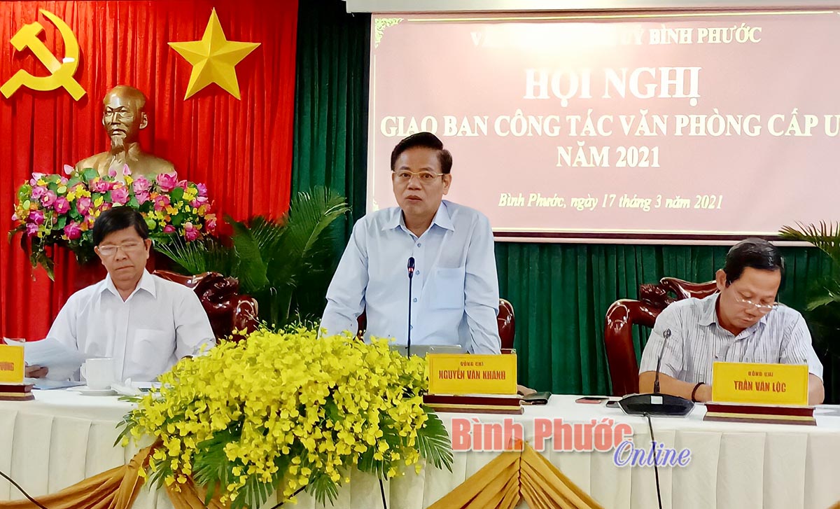 Năm 2021 có ý nghĩa rất quan trọng, là năm đầu thực hiện Nghị quyết Đại hội Đảng toàn quốc lần thứ XIII, Nghị quyết Đại hội Đảng bộ tỉnh lần thứ XI và Kế hoạch phát triển kinh tế - xã hội 5 năm 2021-2025. Để thực hiện tốt và có hiệu quả nhiệm vụ chính trị được giao, Văn phòng Tỉnh ủy và văn phòng các cấp ủy sẽ tiếp tục đổi mới mạnh mẽ, toàn diện các mặt công tác, phấn đấu hoàn thành xuất sắc nhiệm vụ.