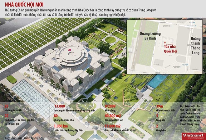Như đánh giá của Thủ tướng Nguyễn Tấn Dũng trong cuộc kiểm tra mới đây về tiến độ hoàn thiện Nhà Quốc hội và Hội trường Ba Đình mới: Kể từ nước Việt Nam thống nhất, đây là lần đầu tiên có một công trình trụ sở làm việc của cơ quan nhà nước quy mô lớn, yêu cầu công nghệ cao và kỹ thuật hiện đại, thi công phức tạp như công trình Nhà Quốc hội và Hội trường Ba Đình mới. Với ý nghĩa chính là nơi diễn ra các kỳ họp Quốc hội, các phiên họp Uỷ ban Thường vụ Quốc hội nhưng nơi đây cũng sẽ còn là địa điểm tổ chức các lễ kỷ niệm, các cuộc mít tinh lớn vào những ngày trọng đại của đất nước và là nơi đón tiếp khách quốc tế Cấp cao của Đảng, Nhà nước.