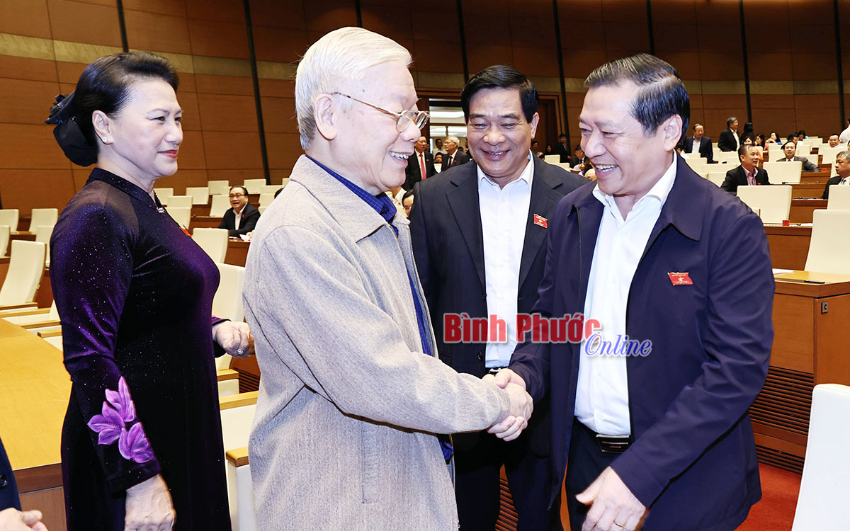 Tổng Bí thư Nguyễn Phú Trọng và nguyên Chủ tịch Quốc hội Nguyễn Thị Kim Ngân cùng các đại biểu tại kỳ họp