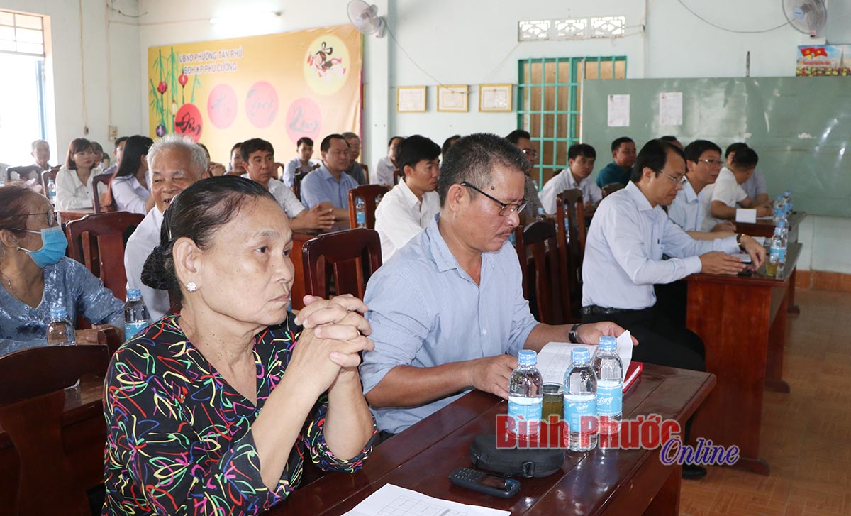 Cử tri khu phố Phú Lộc, phường Tân Phú góp ý với những người ứng cử đại biểu HĐND tỉnh Bình Phước nhiệm kỳ 2021-2026
