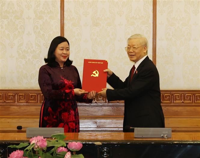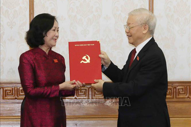 Tại buổi lễ, Tổng Bí thư Nguyễn Phú Trọng đã trao Quyết định số 45-QĐNS/TW ngày 5-4-2021 của Bộ Chính trị phân công đồng chí Trương Thị Mai, Ủy viên Bộ Chính trị, Trưởng ban Dân vận Trung ương giữ chức Trưởng ban Tổ chức Trung ương; trao Quyết định số 39-QĐNS/TW ngày 5-4-2021 của Bộ Chính trị phân công đồng chí Bùi Thị Minh Hoài, Bí thư Trung ương Đảng giữ chức Trưởng ban Dân vận Trung ương.