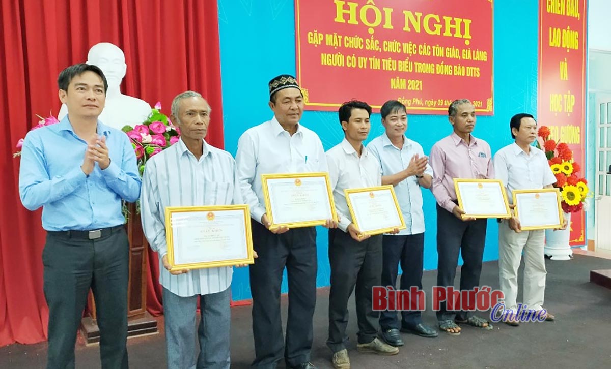 Ghi nhận những đóng góp của các chức sắc, chức việc, già làng, người có uy tín, huyện Đồng Phú đã tặng giấy khen cho 7 cá nhân và tặng quà cho các đại biểu tham dự hội nghị.