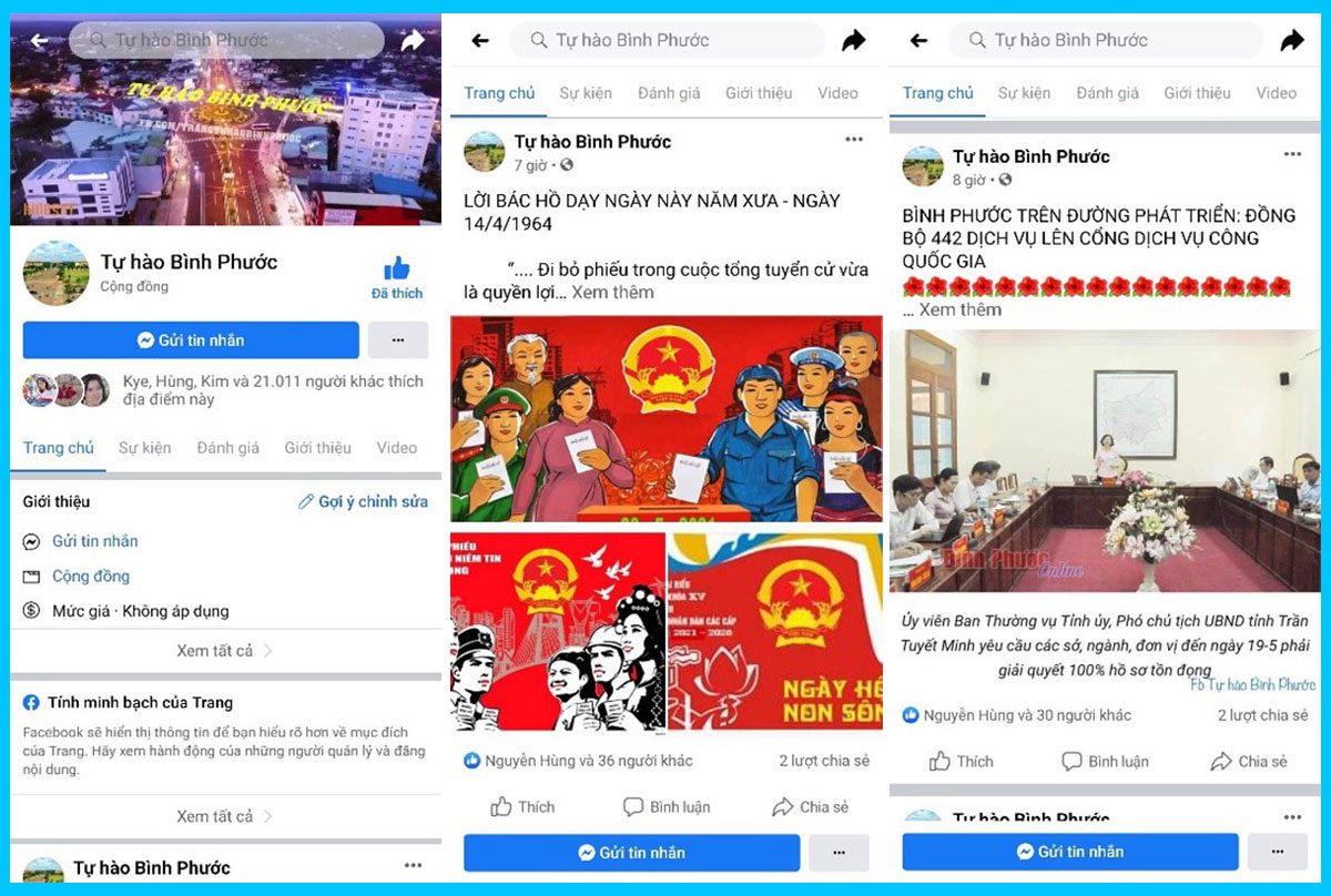 Fanpage “Tự hào Bình Phước” hiện có hơn 21.000 người thích trang, hơn 26.200 người theo dõi. Fanpage đã đăng tải khoảng 10.000 bài viết, thu hút 22 triệu lượt tiếp cận các bài viết trên trang