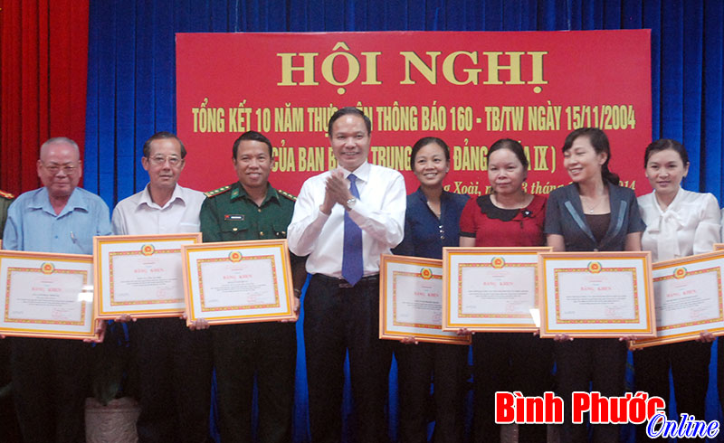 19 tập thể, 18 cá nhân được nhận bằng khen trong triển khai thực hiện Thông báo số 160-TB/TW. Trong ảnh, Phó bí thư Tỉnh ủy Lê Văn Châu tặng bằng khen cho các tập thể có thành tích xuất sắc