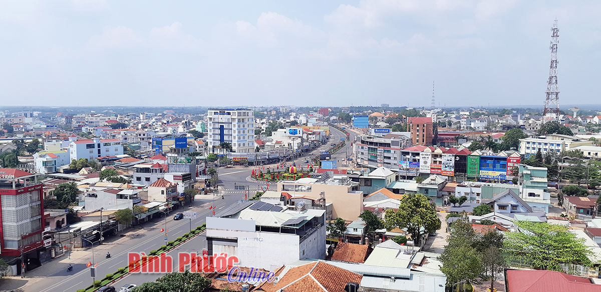 Tốc độ tăng trưởng bình quân hàng năm của Đồng Xoài đạt trên 15%, gấp hơn 2 lần tăng trưởng bình quân của cả tỉnh. Trong ảnh: Một góc thành phố Đồng Xoài hôm nay
