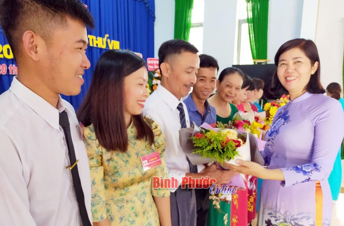Ủy viên Ban Thường vụ, Trưởng ban Dân vận Huyện ủy, Chủ tịch UBMTTQVN huyện Đồng Phú Ngô Thị Thanh Chung tặng hoa cho Ban chấp hành nhiệm kỳ mới