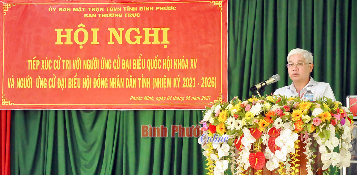 Cử tri Bù Gia Mập đồng thuận cao với chương trình hành động người ứng cử đại biểu HĐND cấp tỉnh, huyệnBPO - Chiều nay 4-5, tại xã Bù Gia Mập, Thường trực UBMTTQVN huyện Bù Gia Mập tổ chức hội nghị tiếp xúc cử tri với những người ứng cử đại biểu HĐND cấp tỉnh và cấp huyện, nhiệm kỳ 2021-2026.