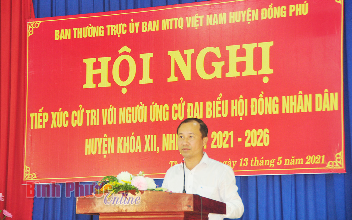 Người ứng cử đại biểu HĐND huyện Đồng Phú Nguyễn Anh Tuấn trình bày chương trình hành động của mình trước cử tri