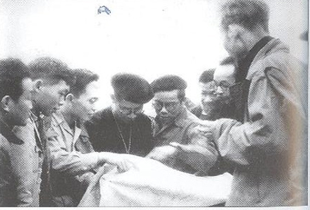 Chủ tịch Hồ Chí Minh và Hội đồng Chính phủ nghe Đại tướng Võ Nguyên Giáp báo cáo tình hình Chiến dịch Việt Bắc, Thu - Đông 1947 (Ảnh tư liệu) . |