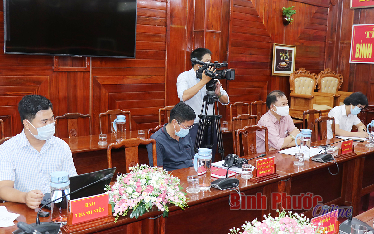 Các phóng viên, nhà báo thuộc các cơ quan thông tấn, báo chí trong và ngoài tỉnh tham gia họp báo