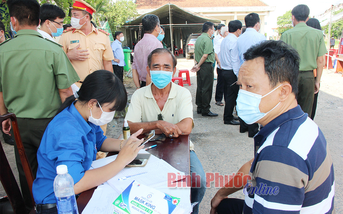 Thanh niên Đồng Phú trực tại chốt hỗ trợ người dân khai báo y tế điện tử