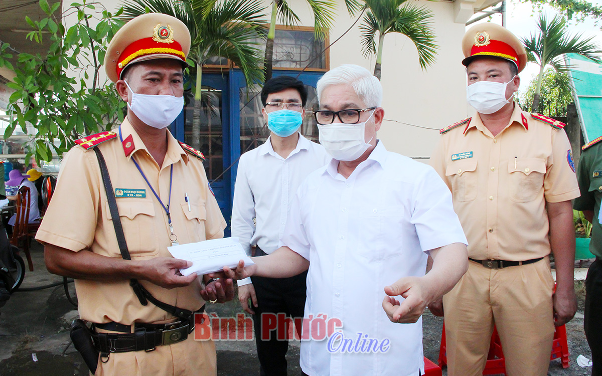 Dịp này, Bí thư Tỉnh ủy Nguyễn Văn Lợi và đoàn đã trao tặng chốt 50 triệu đồng từ Quỹ phòng chống dịch Covid-19 của tỉnh; đồng thời động viên khích lệ cán bộ, chiến sĩ an tâm bám chốt làm nhiệm vụ, tất cả vì một Bình Phước an toàn và phát triển.