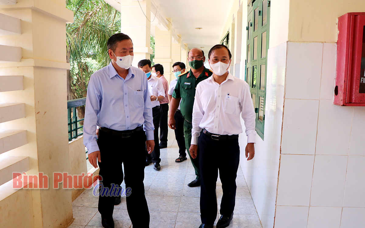Sau khi kiểm tra thực tế các khu cách ly, Phó chủ tịch UBND tỉnh Huỳnh Anh Minh cùng đoàn công tác đã đến kiểm tra Bệnh viện đa khoa thuộc Trung tâm y tế huyện Đồng Phú - nơi dự kiến trong tình huống cần thiết sẽ chuyển thành bệnh viện dã chiến điều trị cho các ca bệnh liên quan đến Covid-19.