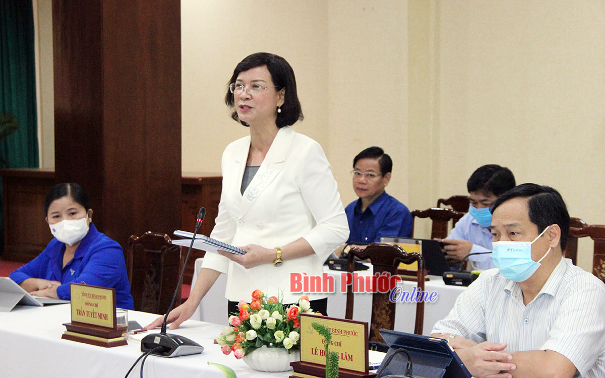 Ủy viên Ban Thường vụ Tỉnh ủy, Phó chủ tịch UBND tỉnh Trần Tuyết Minh đề nghị các đơn vị xây dựng kế hoạch thực hiện chuyển đổi số hoàn thành trước ngày 15-7 để thông qua Ban Chỉ đạo thực hiện chuyển đổi số của tỉnh