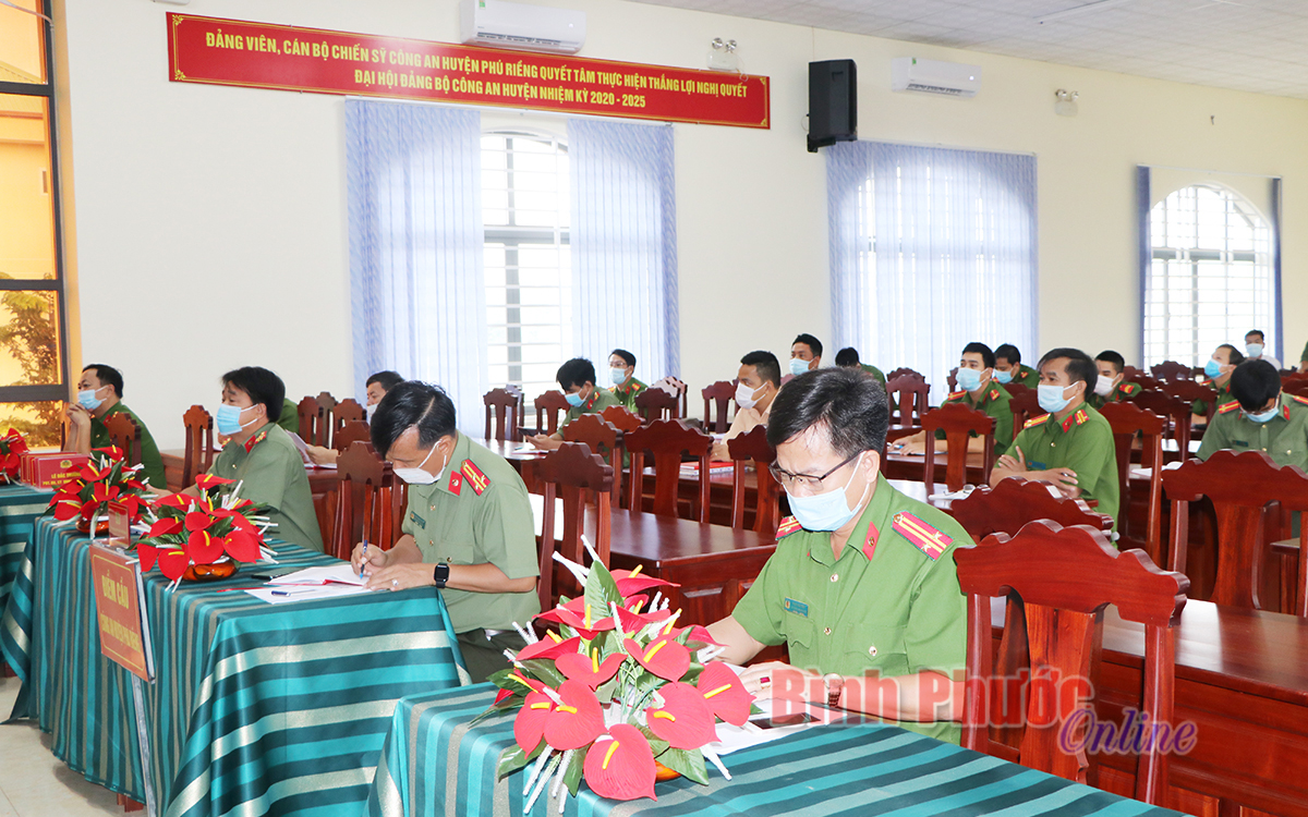 Điểm cầu tại Công an huyện Phú Riềng tham gia học tập chuyên đề, dự hội nghị nghiêm túc