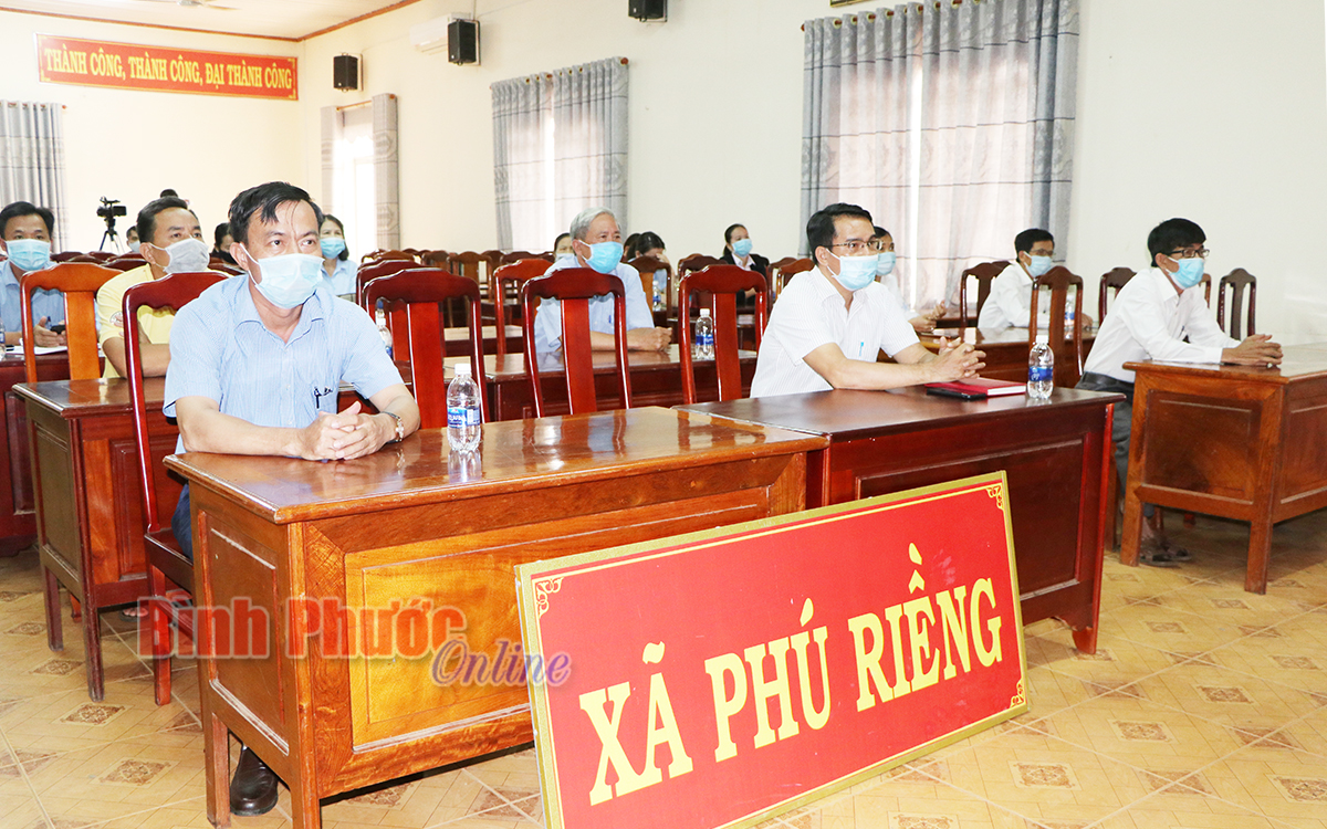 Tham dự hội nghị, tất cả điểm cầu của huyện Phú Riềng đã nghiêm túc thực hiện các biện pháp phòng, chống dịch Covid-19.