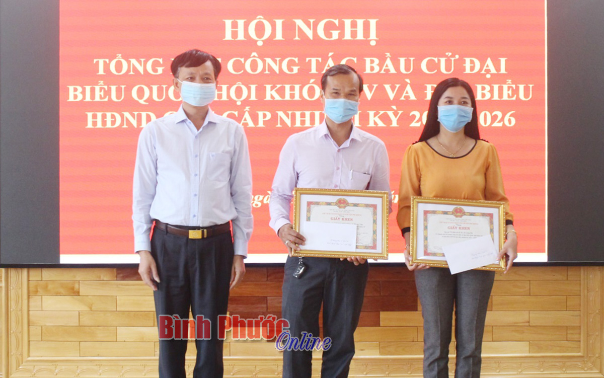 Bên cạnh đó, cá nhân Chủ tịch UBND huyện Phú Riềng Lê Anh Nam cũng trao thưởng cho 2 xã Phú Trung, Bình Sơn, là các đơn vị hoàn thành xong việc bỏ phiếu và kiểm phiếu sớm nhất.